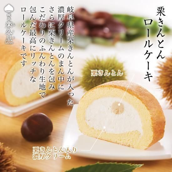岐阜県産栗きんとんが入った濃厚クリームの真ん中に、さらに栗きんとんを包み、こだわりのふんわり生地で包んだ最高にリッチなロールケーキです。